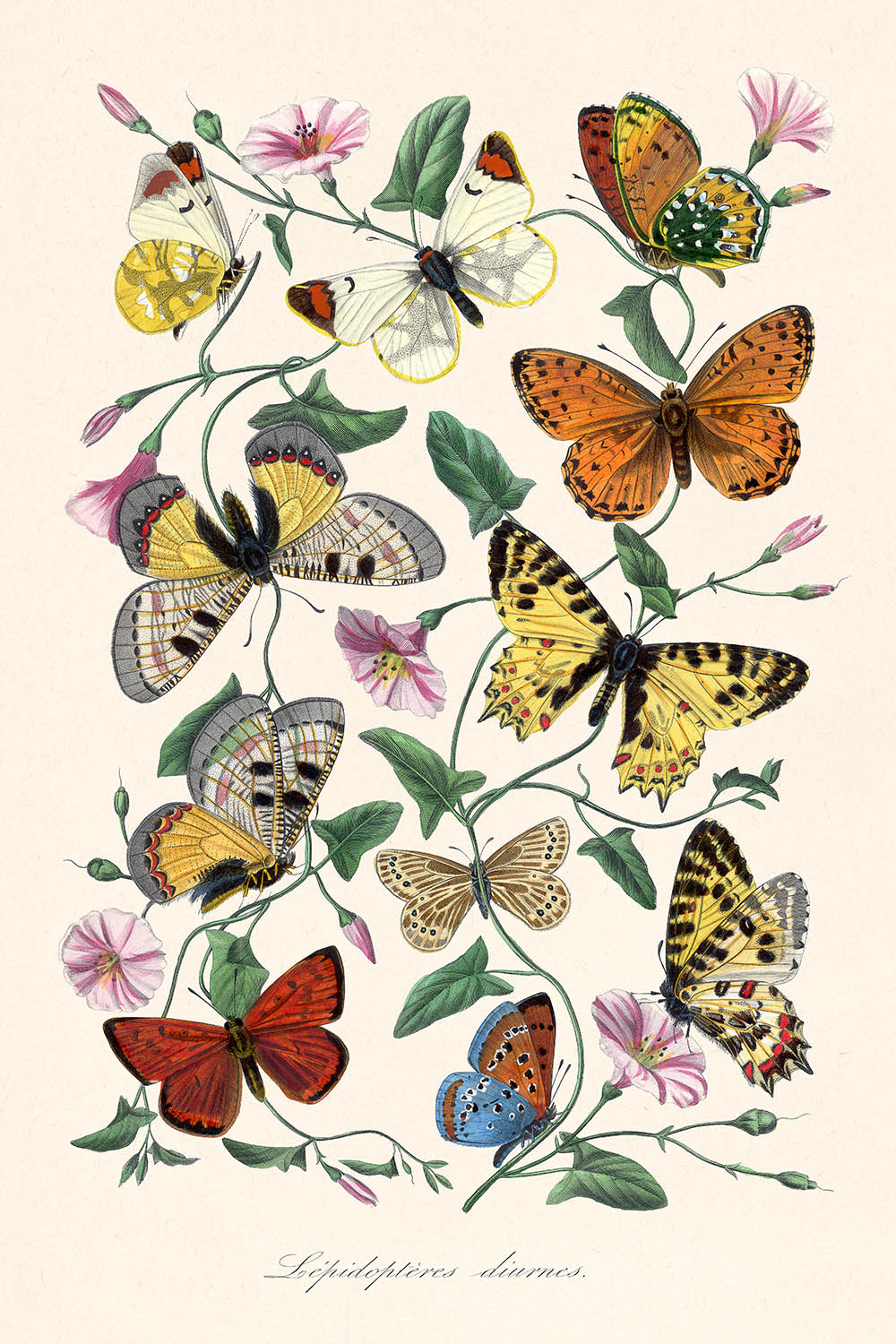 Ilustración zoológica de mariposas y polillas por Paul Gervais, 1842