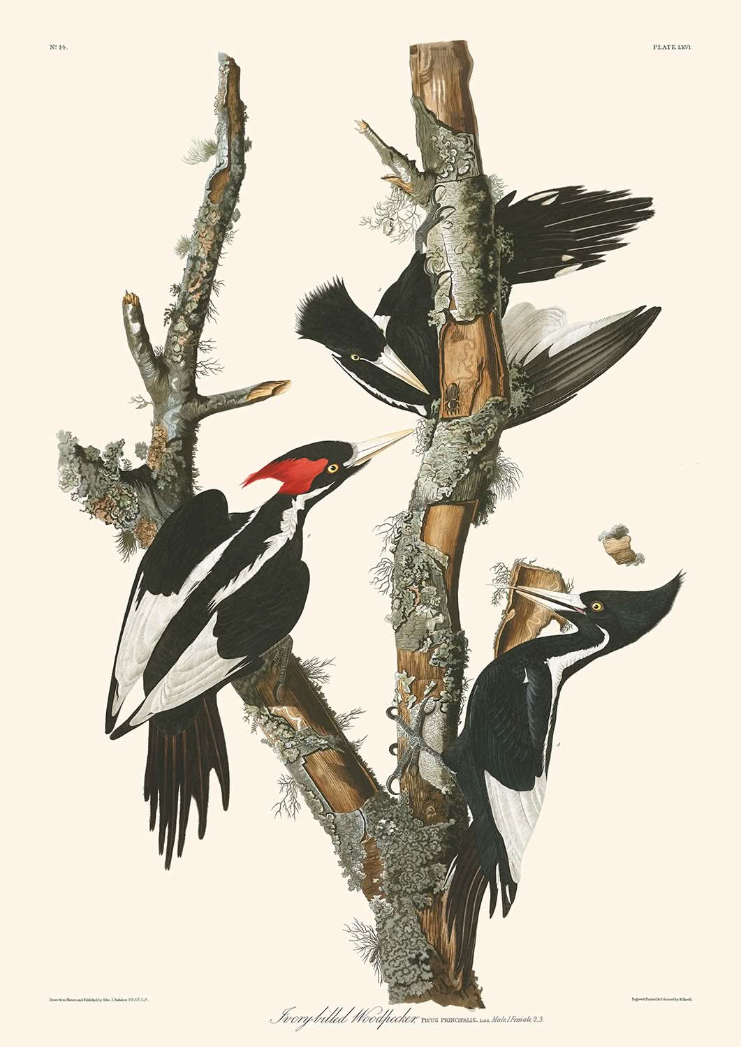 Pájaro carpintero de pico de marfil, de John James Audubon, 1827