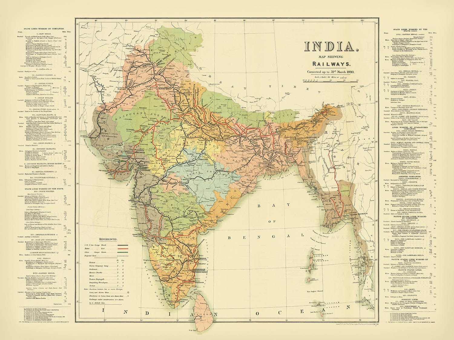 - Original title: "India. Map Shewing Railways, corrected up to 31st March 1890"
