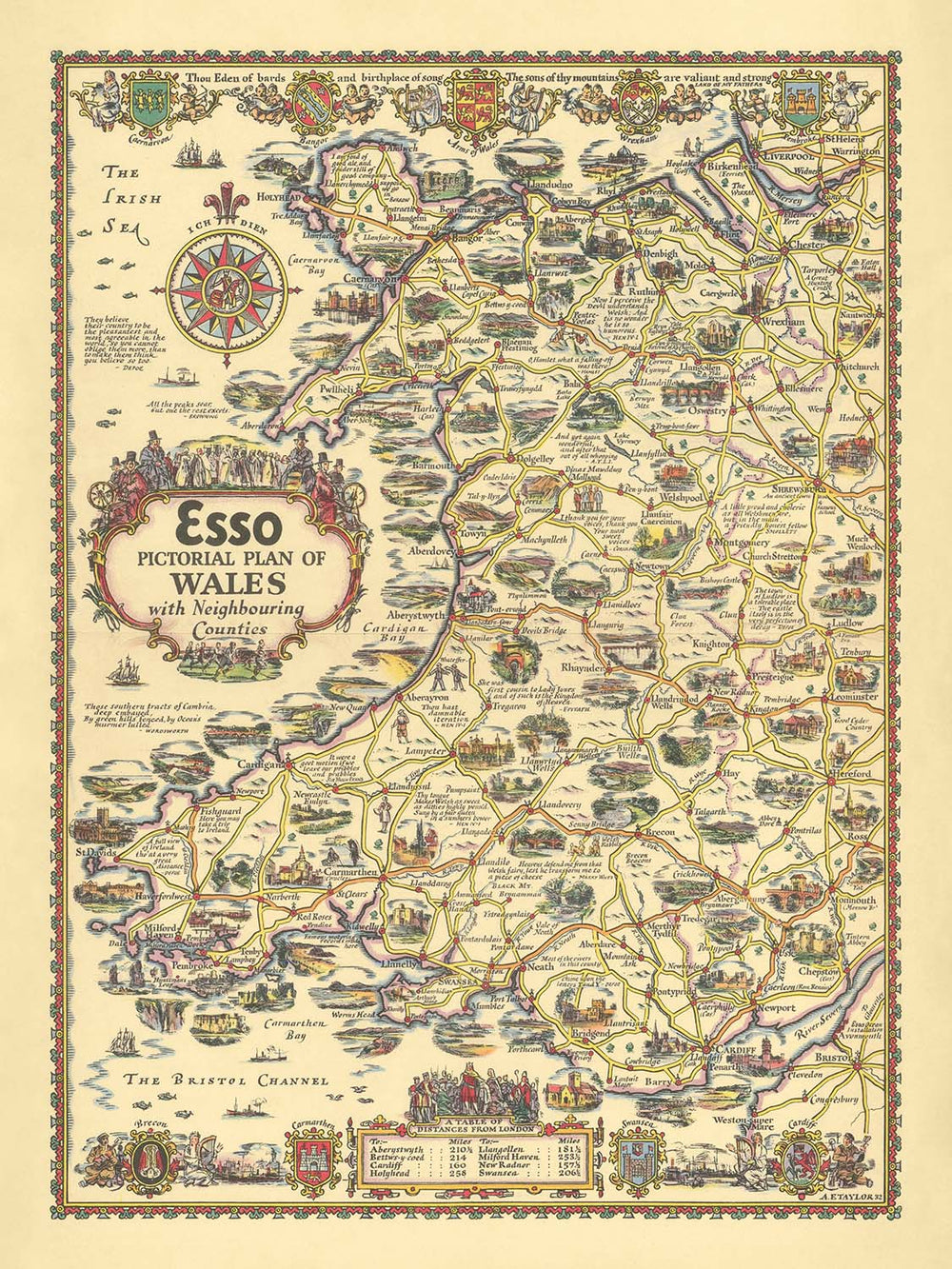 Antigua mapa de Esso de Gales por AE Taylor, 1934