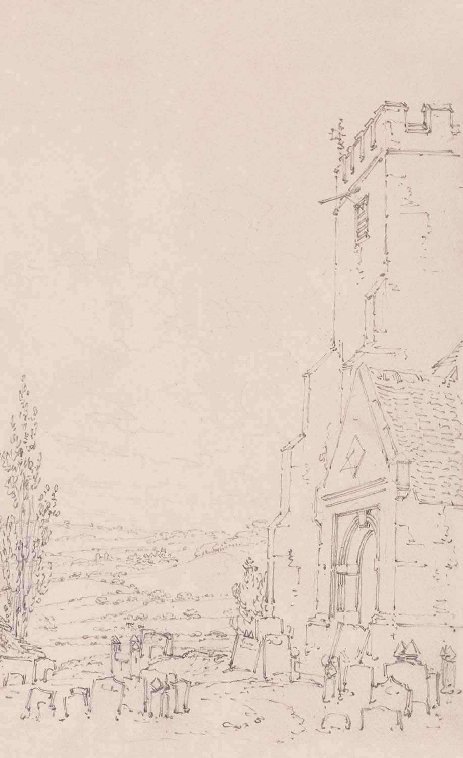 The subject here—an unidentified church—embodies Romanticism’s reverence for the picturesque and the timeworn. The weathered stonework and quiet churchyard speak to centuries of local life and devotion, evoking nostalgia and reflection. The modest grave markers in the foreground deepen the meditation on memory and mortality, themes that resonate strongly in late-18th-century art and literature. Whether or not the building is strictly Gothic, its medieval character and village setting cue the viewer to a longer story etched into the landscape.