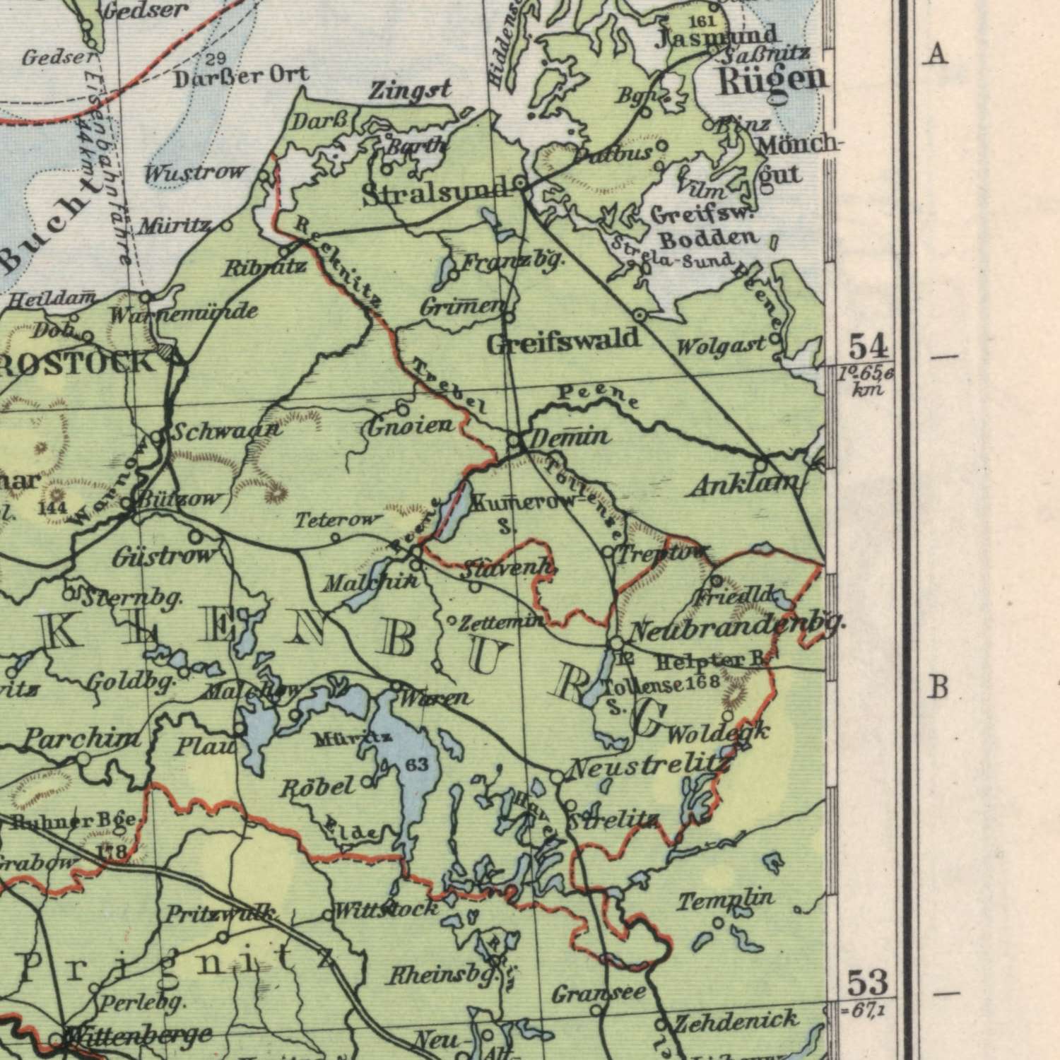 • Key transportation routes including roads and railroads.