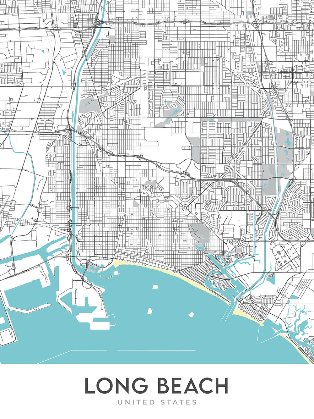 Esta creación original de The Unique Maps Co. presenta una cartografía única, un diseño moderno y una paleta de colores llamativa. El mapa está impreso en papel de alta calidad y está disponible en una variedad de tamaños para adaptarse a cualquier espacio. Ya sea que seas un residente local o simplemente un fanático de los hermosos mapas, este mapa de Long Beach seguramente te complacerá.