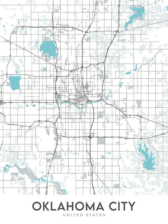 Mapa moderno de la ciudad de Oklahoma City, OK: Centro, Bricktown, Paseo, Midtown, Capitol
