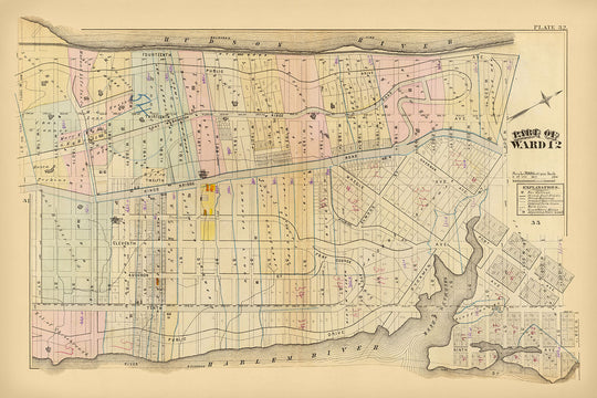 • Significado histórico o contexto: Este mapa ofrece información sobre el desarrollo urbano y la distribución de la propiedad en la ciudad de Nueva York a fines del siglo XIX. Es valioso para comprender el uso histórico del suelo y la planificación urbana en una de las ciudades más emblemáticas del mundo.