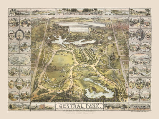 Este mapa bellamente detallado de Central Park es imprescindible para cualquier neoyorquino o aficionado a la historia. Creado originalmente por John Bachmann en 1863, este mapa ofrece una visión fascinante del pasado de uno de los parques más emblemáticos del mundo.
