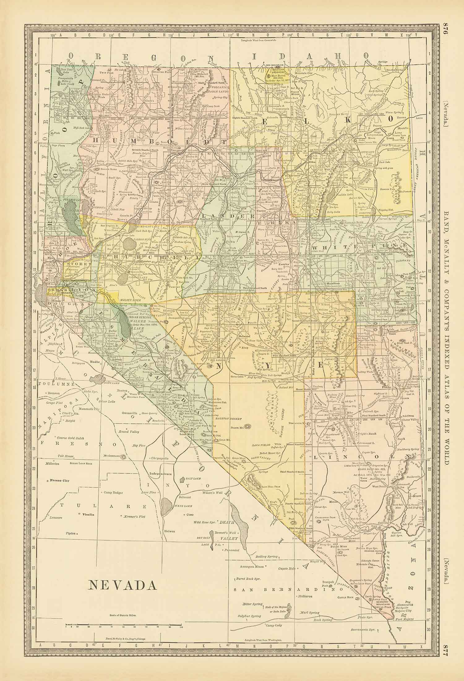 Esta maravillosa antigua mapa de Nevada fue publicada originalmente en 1882. Fue creada por Rand & McNally.