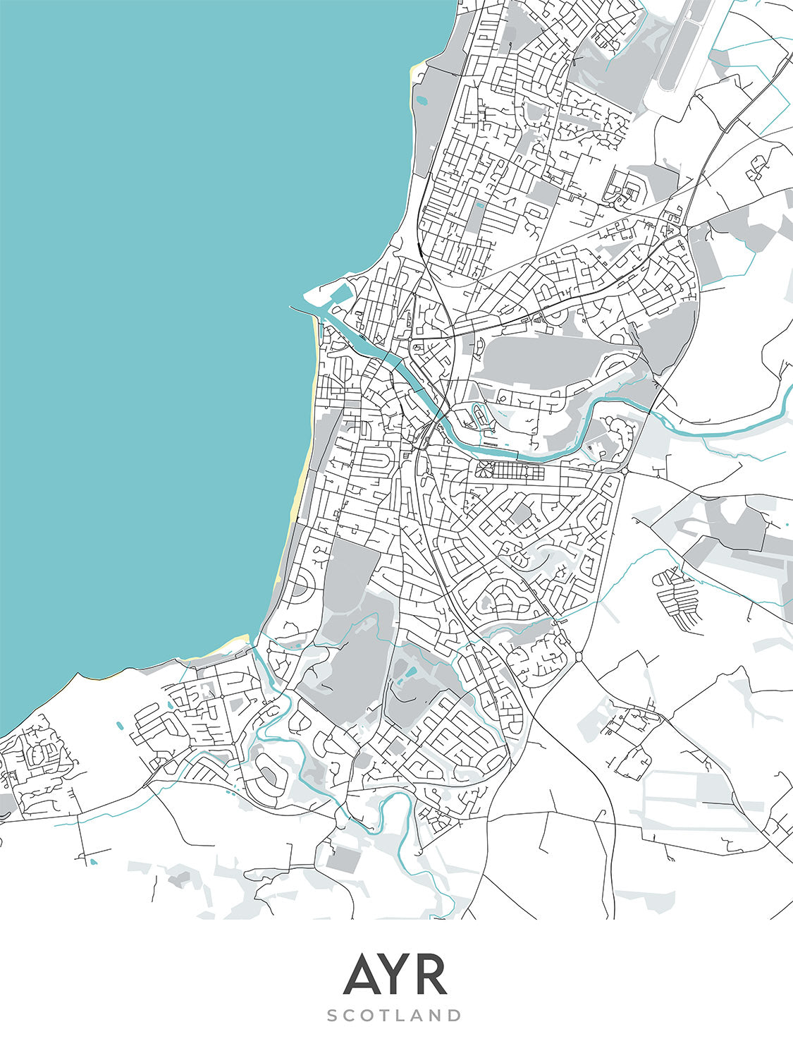 Los hitos de Ayr, tanto naturales como artificiales, están integrados sin problemas en este mapa, ofreciendo un viaje visual a través de algunos de los sitios más icónicos de la ciudad. Desde la pintoresca Playa de Ayr y el tranquilo flujo del Río Ayr hasta el atractivo histórico de la Auld Kirk de Ayr y la grandeza del Ayuntamiento de Ayr, estos hitos enriquecen el mapa con capas de significado. Esta pieza no solo mejora tu espacio, sino que también te invita a explorar el patrimonio y la belleza de Ayr desde la comodidad de tu hogar.