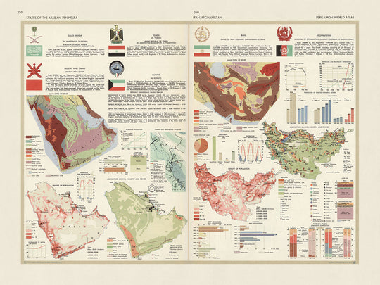 • Estos pequeños mapas y gráficos proporcionan una mirada más detallada a los diferentes aspectos de la Península Arábiga, haciendo que el mapa sea aún más valioso como recurso.