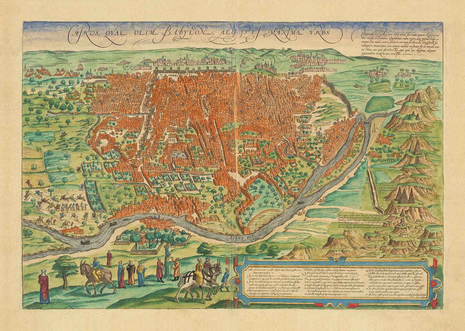Publicado en 1572 por Georg Braun y Frans Hogenberg, este es el mapa completo y verdadero más antiguo de El Cairo. Si Shakespeare alguna vez visitó El Cairo, así es como se habría visto.