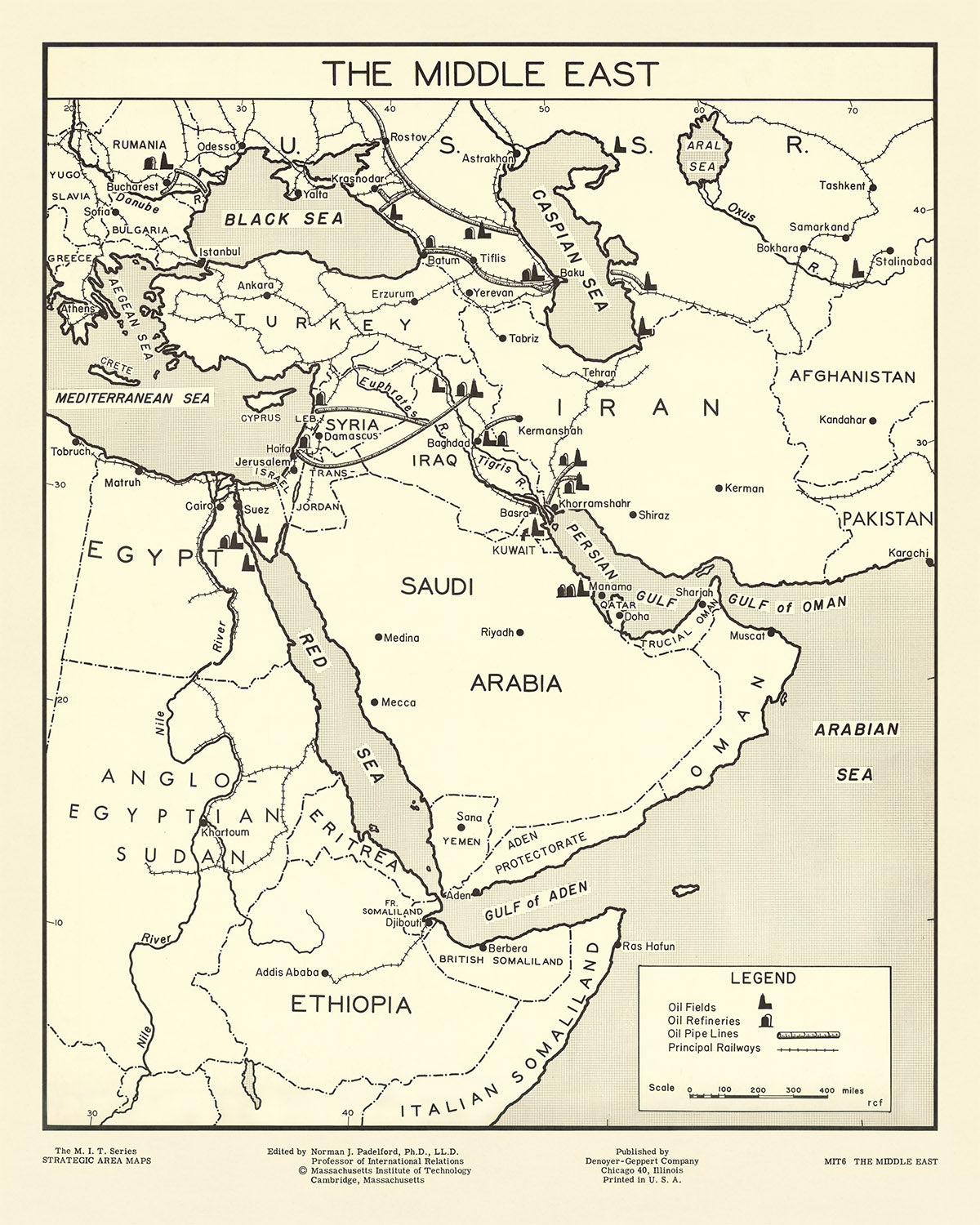 • Uno de los primeros mapas estadounidenses que se centra específicamente en la industria del petróleo en el Medio Oriente