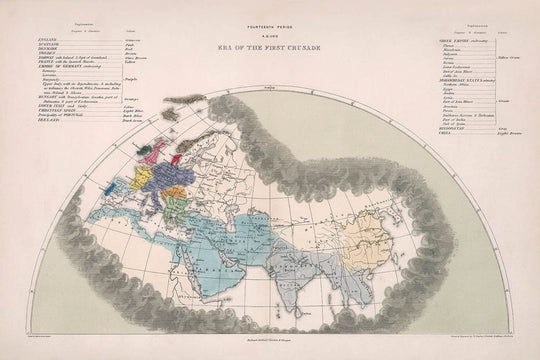 Poseer este mapa es como poseer un trozo de historia. Te invita a sumergirte en el pasado y a explorar los imperios y reinos que alguna vez dominaron el escenario mundial. Ya seas un aficionado a la historia, un coleccionista de mapas raros o alguien con pasión por la era medieval, este mapa ofrece una combinación única de arte e historia. Es un testimonio del legado perdurable de la Primera Cruzada y de la comprensión en constante evolución de la geografía de nuestro mundo.