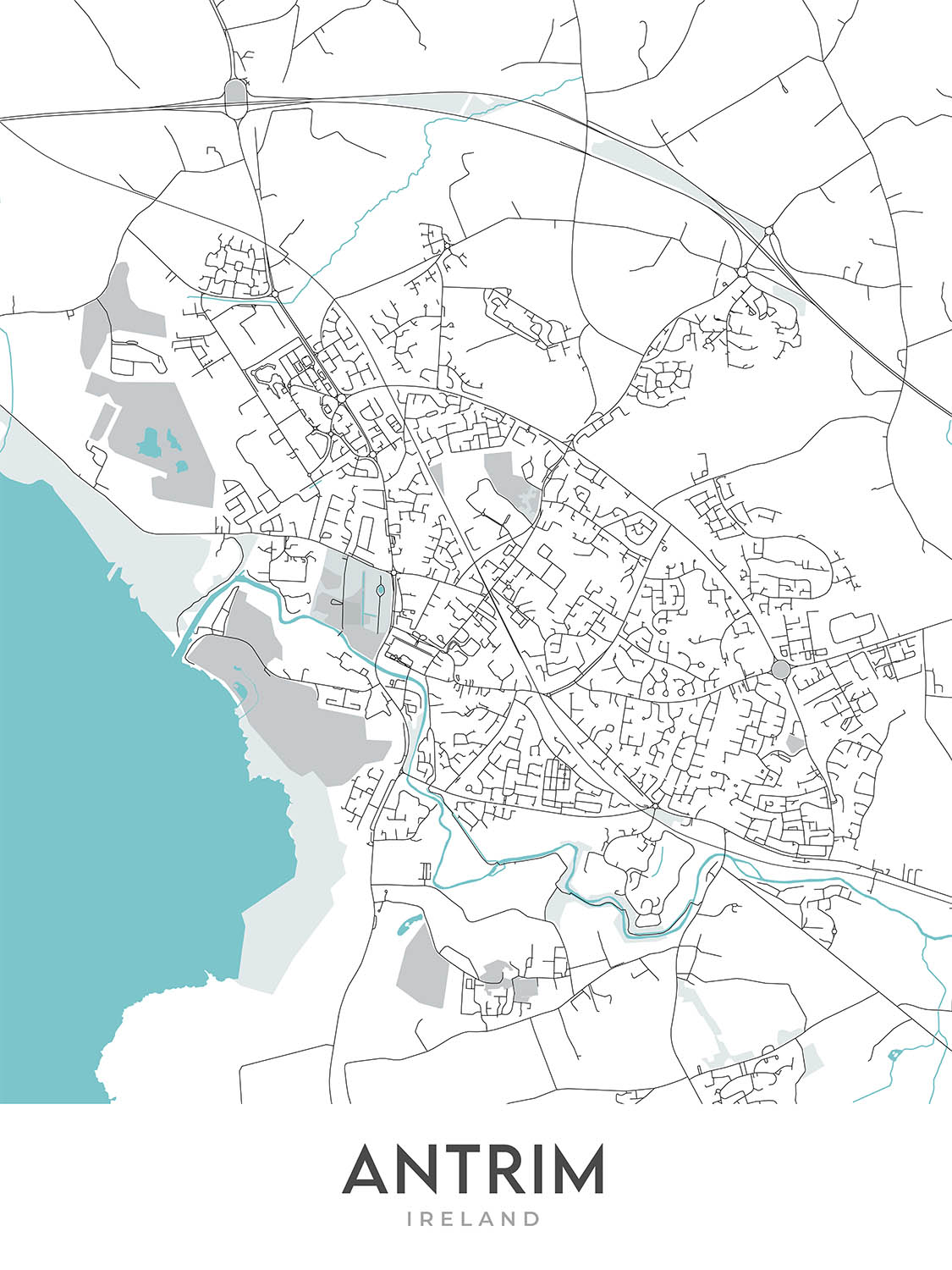 Este mapa no es sólo una herramienta de navegación; es una obra de arte que da vida a la ciudad de Antrim de una manera nueva y atractiva. Su atractivo estético radica en su capacidad de transformar un espacio geográfico en una pieza visualmente cautivadora que complementa una variedad de estilos de interiores. La descripción detallada del mapa de las carreteras principales, como Dublin Road, Ballymena Road y Greystone Road, junto con lugares destacados como los jardines del castillo de Antrim y el río Six Mile Water, añade profundidad y carácter a la obra de arte, convirtiéndola en un tema de conversación en cualquier habitación. .