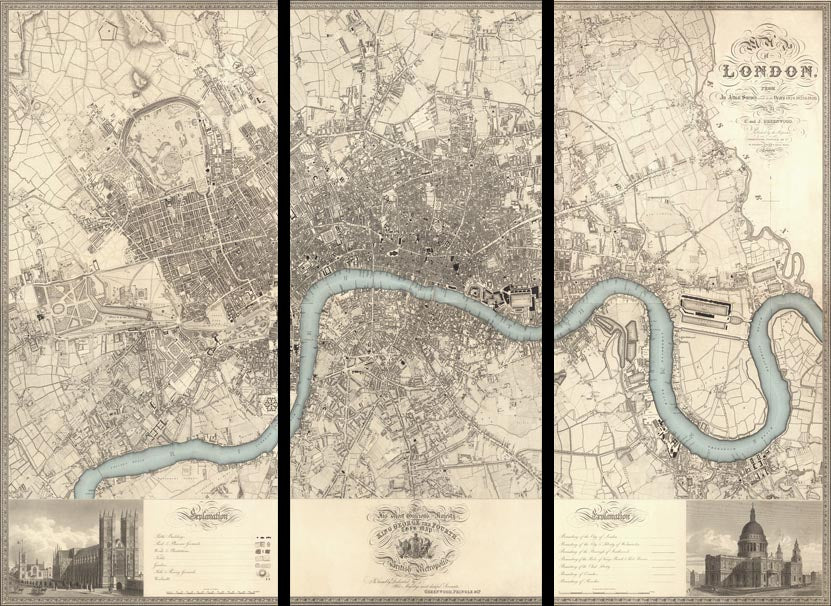 El mapa de Londres de Greenwood de 1830 es uno de los mejores jamás realizados de la capital de Inglaterra - y la forma más hermosa e impactante de exhibirlo es como un tríptico.