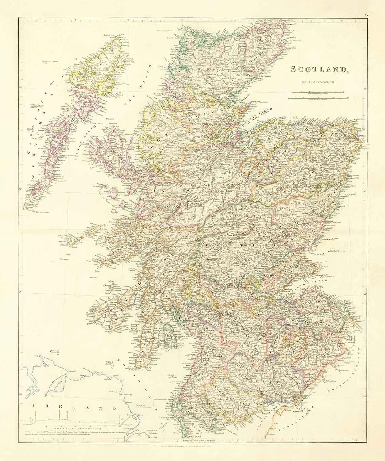 Un mapa precioso de Escocia, publicado por probablemente el cartógrafo más buscado de mediados del siglo XIX, John Arrowsmith.