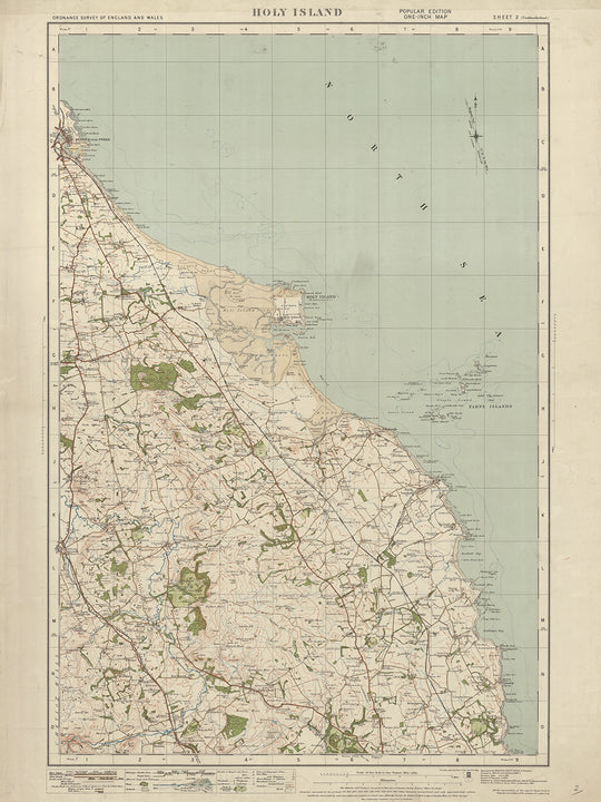 Antigua Mapa del Servicio de Ordenanzas, Hoja 2: Isla Sagrada, 1919-1926: Belford, Wooler, Seahouses y Berwick-upon-Tweed