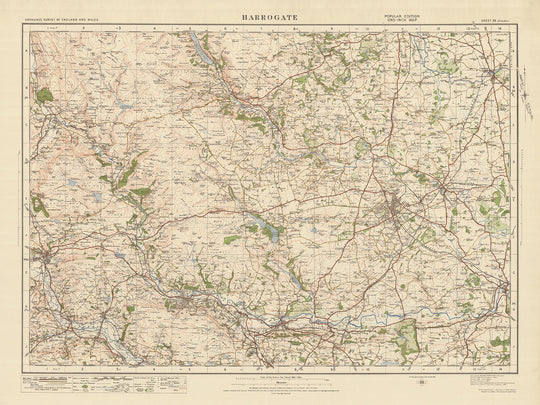 Este extraordinario mapa, titulado "Hoja 26 - Harrogate", forma parte de la célebre edición "Popular" de una pulgada de los mapas de Ordnance Survey para Inglaterra y Gales, publicada en 1925. El mapa muestra la histórica ciudad de Harrogate y sus alrededores, proporcionando una fascinante mirada al pasado. Además de Harrogate, este mapa incluye las ciudades de Otley, Ilkley, Skipton, Knaresborough y la impresionante zona de excepcional belleza natural de Nidderdale.
