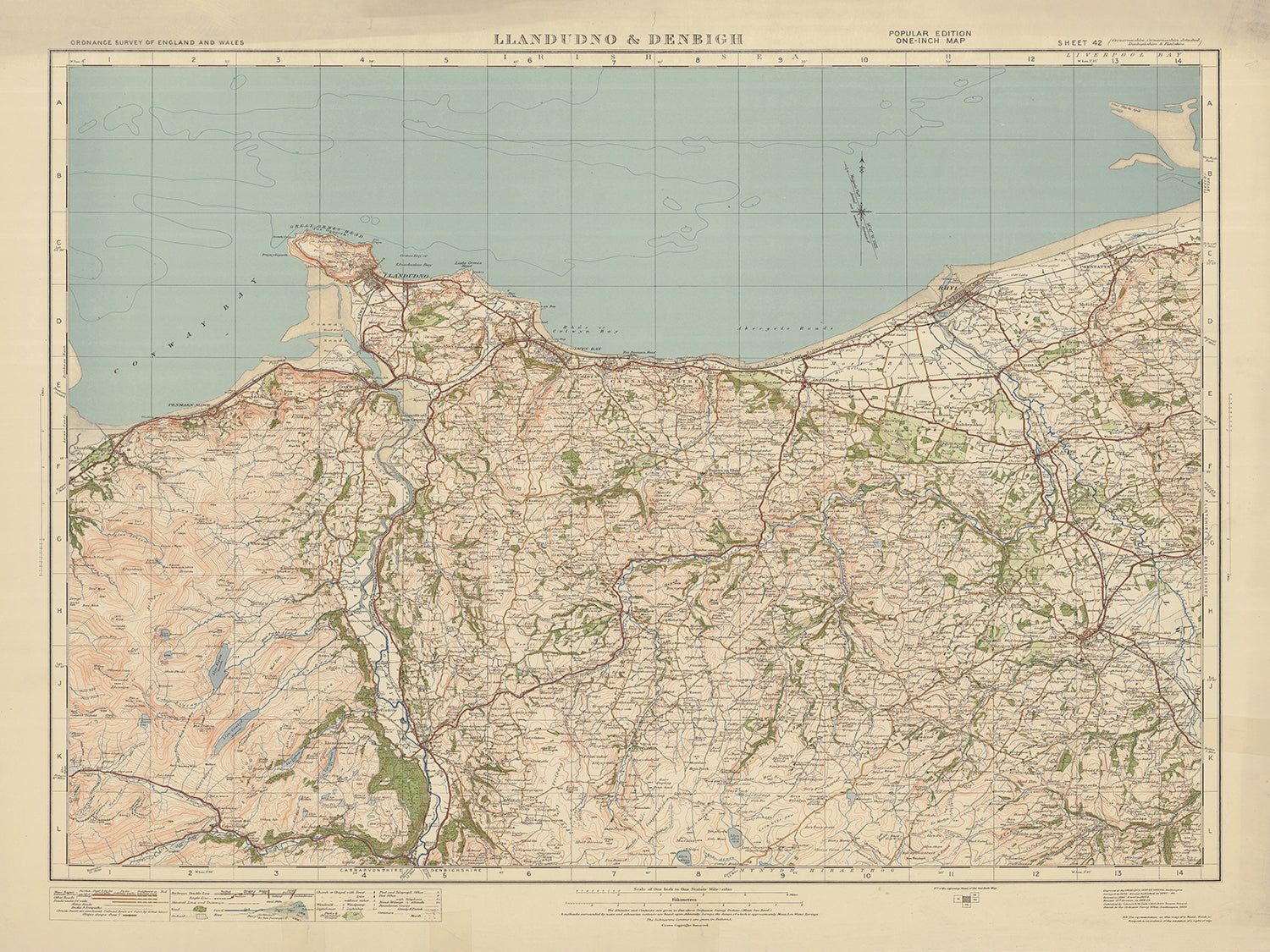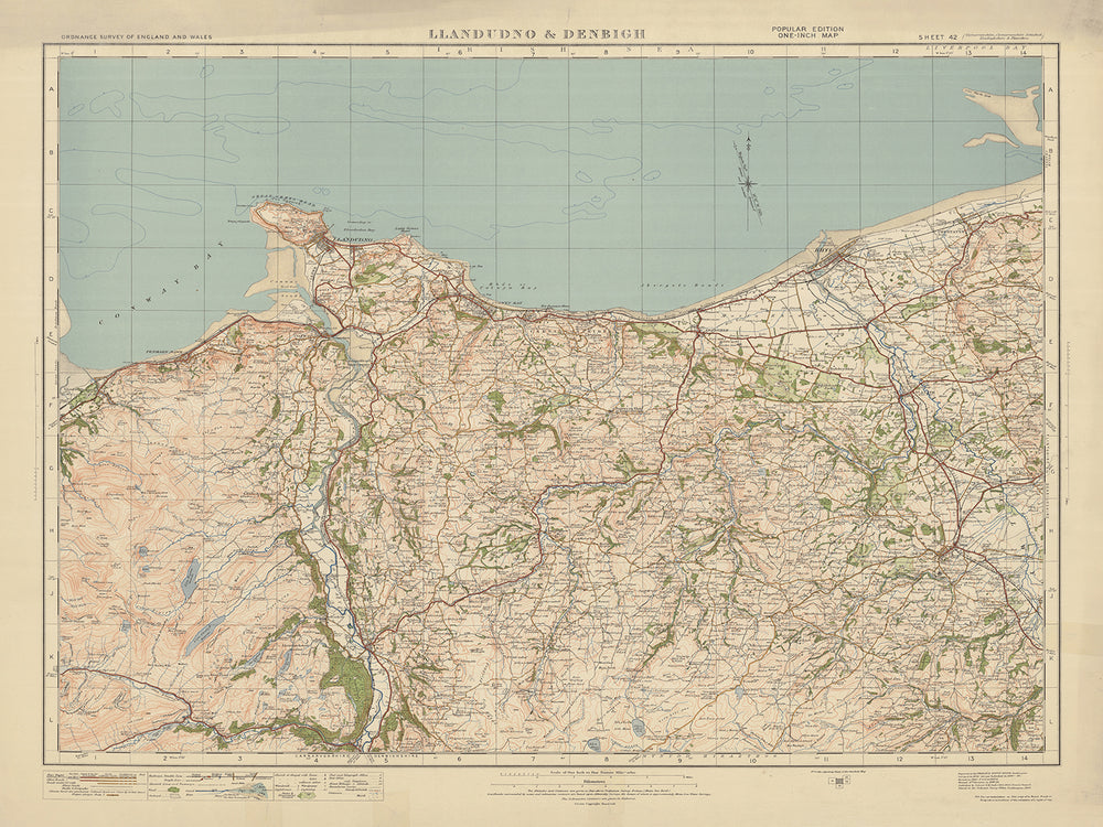 Sumérgete en el pasado con el "Mapa antiguo de estudio de artillería, hoja 42 - Llandudno y Denbigh, 1925" y descubre la fascinante historia y los cautivadores paisajes de esta extraordinaria región.