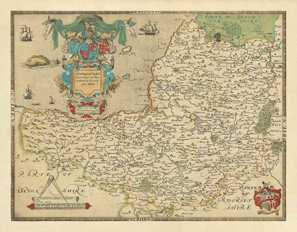 Creada hace casi 450 años, este es el primer mapa impreso de Somersetshire. Fue publicado originalmente por Christopher Saxton, el padre de la cartografía británica. Es un hermoso mapa antiguo, muy detallado y extremadamente raro.