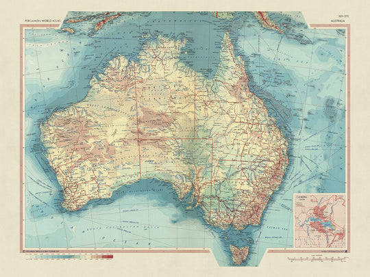 Mapa antiguo de Australia, 1967: Atlas político y físico de estados y territorios