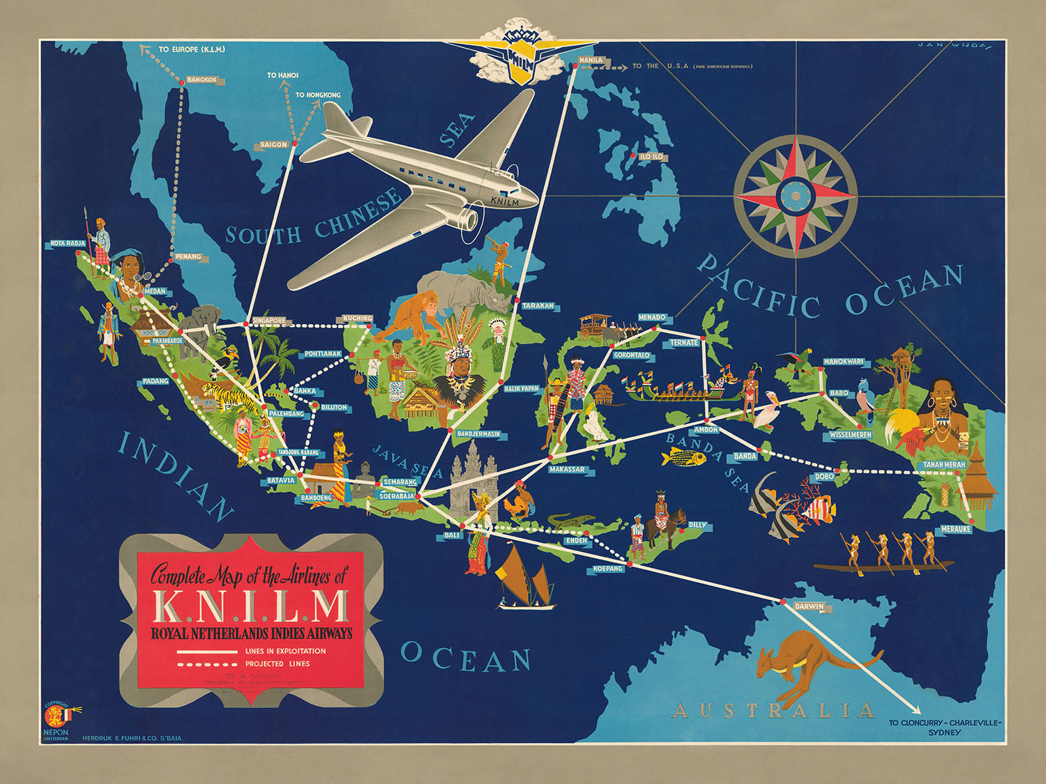 - Nombre del mapa: Mapa completo de las aerolíneas de KNILM, Royal Netherlands Indies Airways