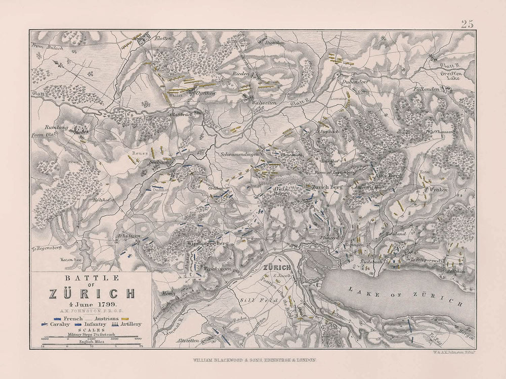 Batalla de Zúrich por AK Johnston, 1799: Fuerzas francesas vs. fuerzas austriacas, Guerra Revolucionaria