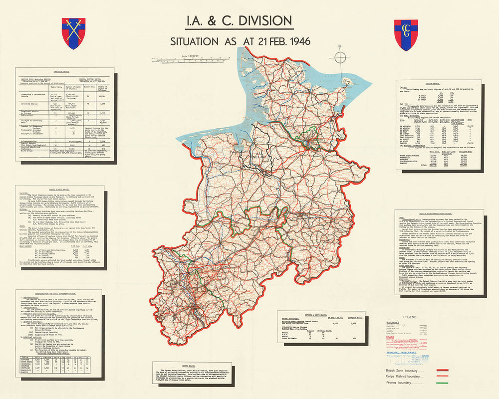 - Name of the map: I.A. & C. Division Situation As At 21 Feb. 1946 (Second World War - Postwar Occupation of Germany - Denazification)