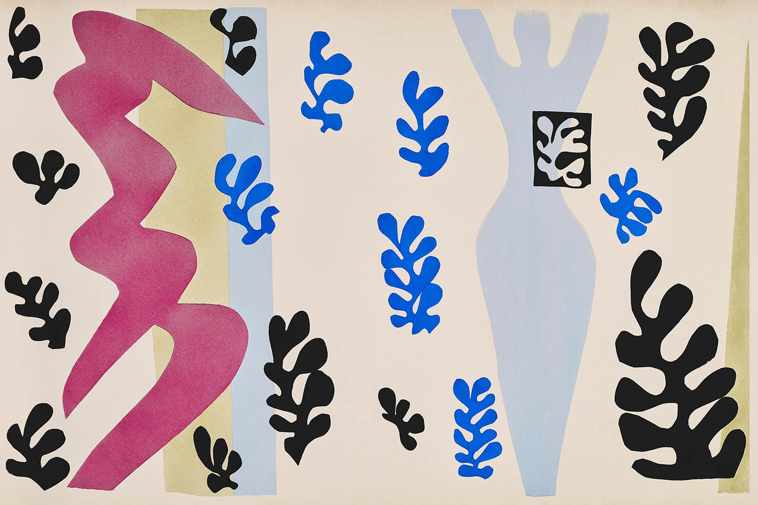 La obra de arte es notable por su paleta de colores distinta dominada por rosas vivos, azules armoniosos y negros impactantes. Matisse demuestra su capacidad para evocar emoción y movimiento utilizando formas recortadas que trascienden las definiciones tradicionales de espacio y línea. Esta experiencia estética única subraya por qué poseer una impresión de esta obra enriquecería cualquier colección.