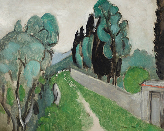 Henri Matisse se mantiene indeleblemente como una figura clave en el arte moderno. Su capacidad para aprovechar emociones complejas a través de la simplicidad de la forma y el color marca esta obra como notable para aquellos que aprecian el poder emotivo del arte. "Paysage avec cyprès et oliviers aux environs de Nice" lo transporta a Niza con su representación meditativa de cipreses y olivos, enraizados en el paisaje verde de la Francia del Sur.