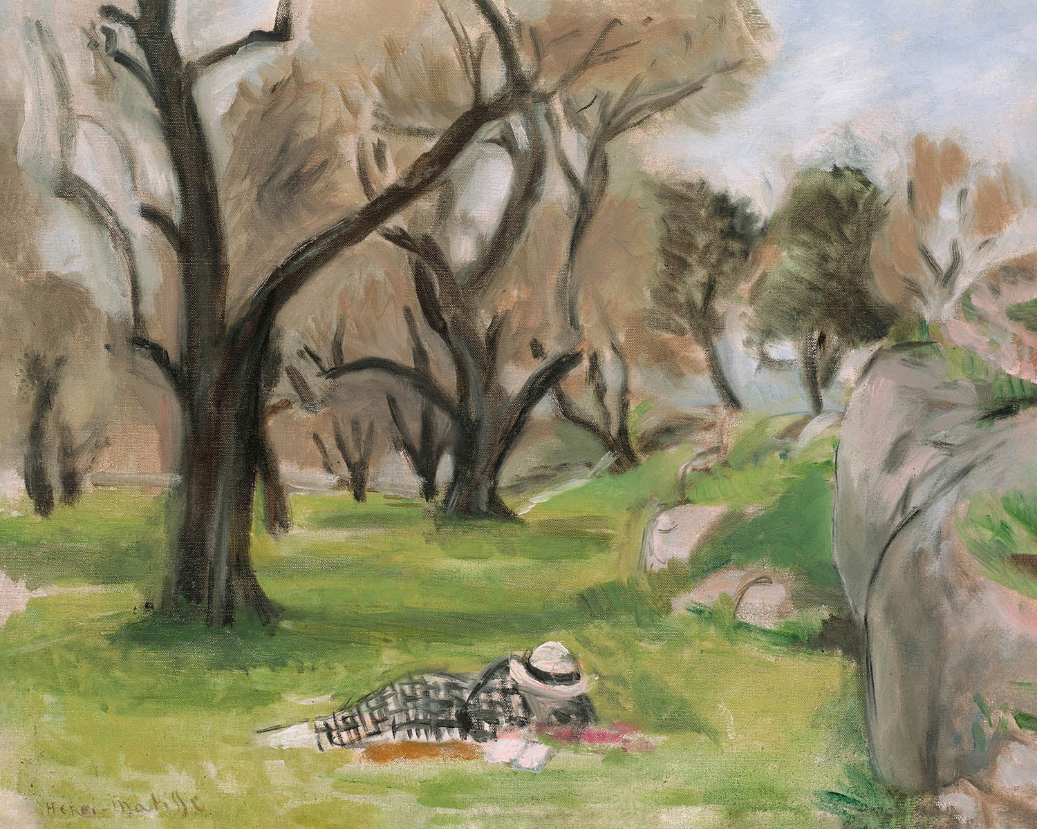 "Paysage du Midi" de Henri Matisse, pintado en 1923, es una magnífica representación de su maestría sobre el color y la forma. Matisse, una figura clave en el arte moderno, es celebrado por su uso innovador del color y su dibujo fluido, características que se muestran vívidamente en esta obra. "Paysage du Midi," que se traduce como "Paisaje del Sur," captura la serena belleza del paisaje mediterráneo con una etérea mezcla de verdes, marrones y azules.