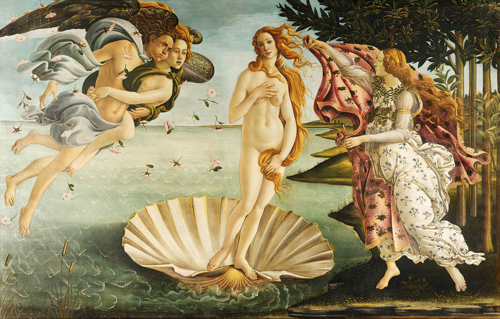 Sandro Botticelli's masterpiece, The Birth of Venus, captures the enchanting moment of the goddess Venus gracefully emerging from the sea upon a scallop shell. Revered as one of the most iconic works of the Italian Renaissance, this painting seamlessly blends classical mythology with the profound humanist philosophy of the era, embodying the Neoplatonic ideals that sought to harmonize earthly beauty with divine perfection.