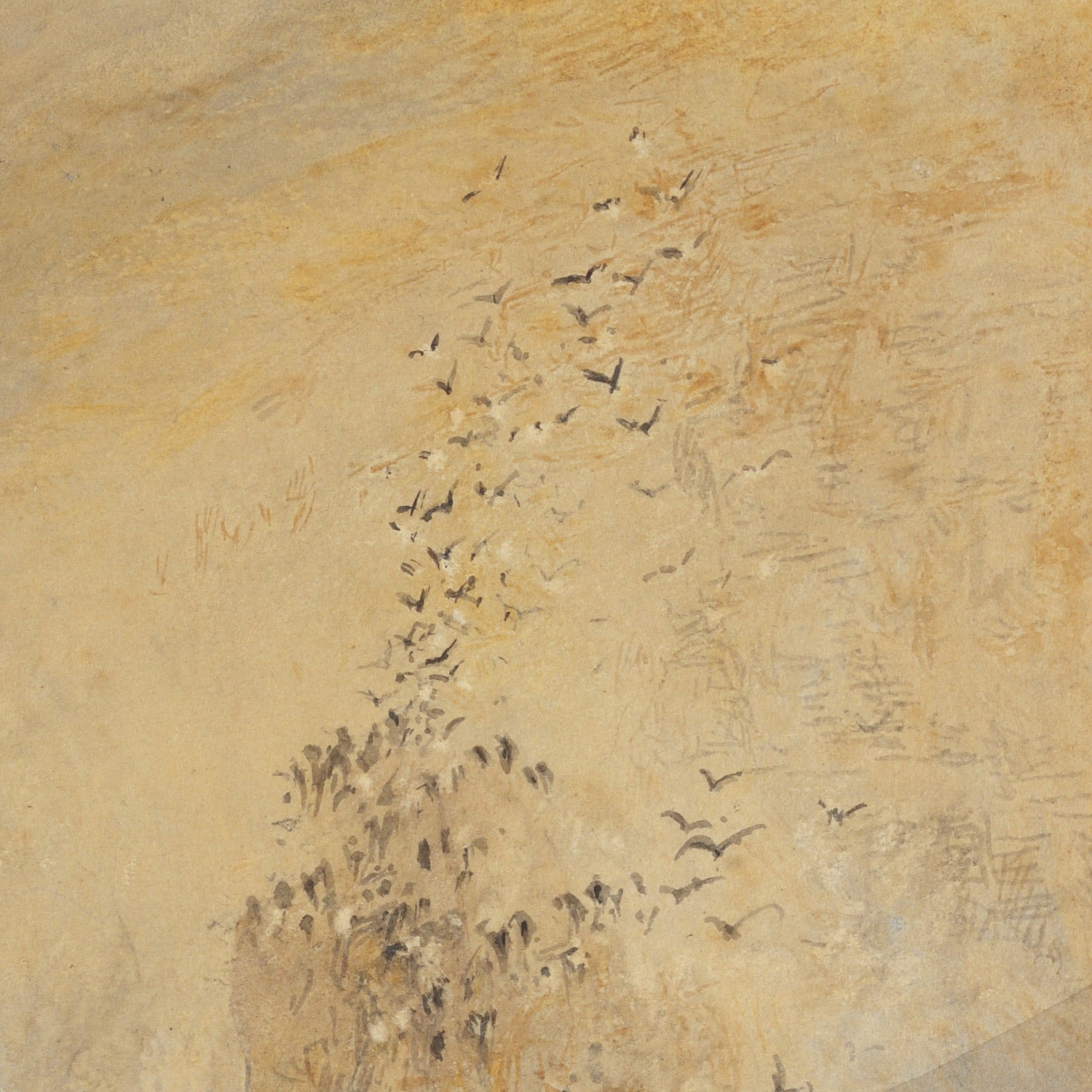 El brillante uso de amarillos cálidos que se fusionan con azules más fríos y toques de naranja de Turner rinde la progresión visual del clima y la luz. Estos ricos colores encapsulan la grandeza de la escena y hablan de la belleza transitoria del amanecer sobre el agua — una intrigante invitación a contemplar el borde de la eternidad.