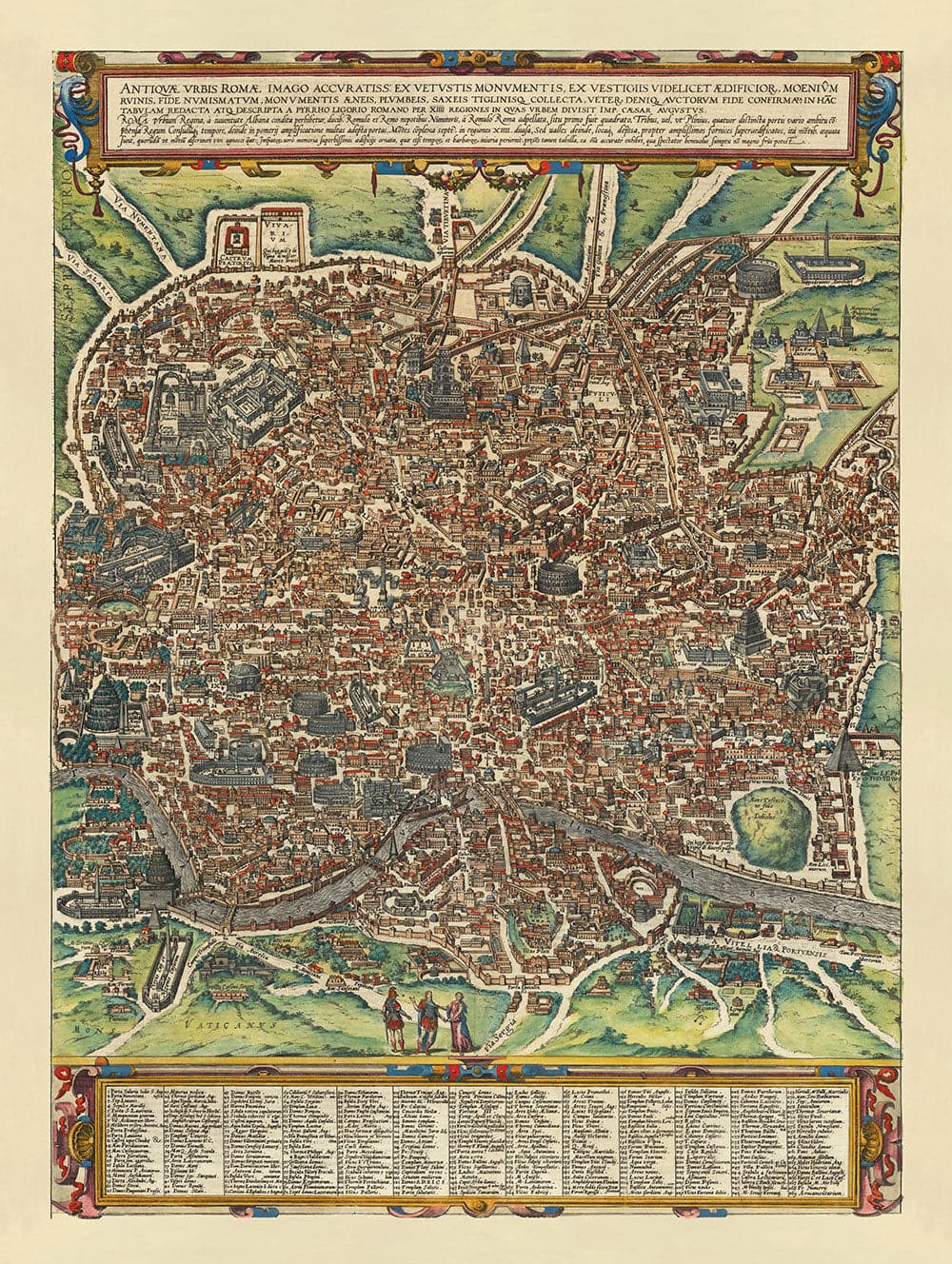 Viejo Mapa de Roma, 1588 por Georg Braun: Foro, Panteón, Circo Maximus, Coliseo, Vaticano