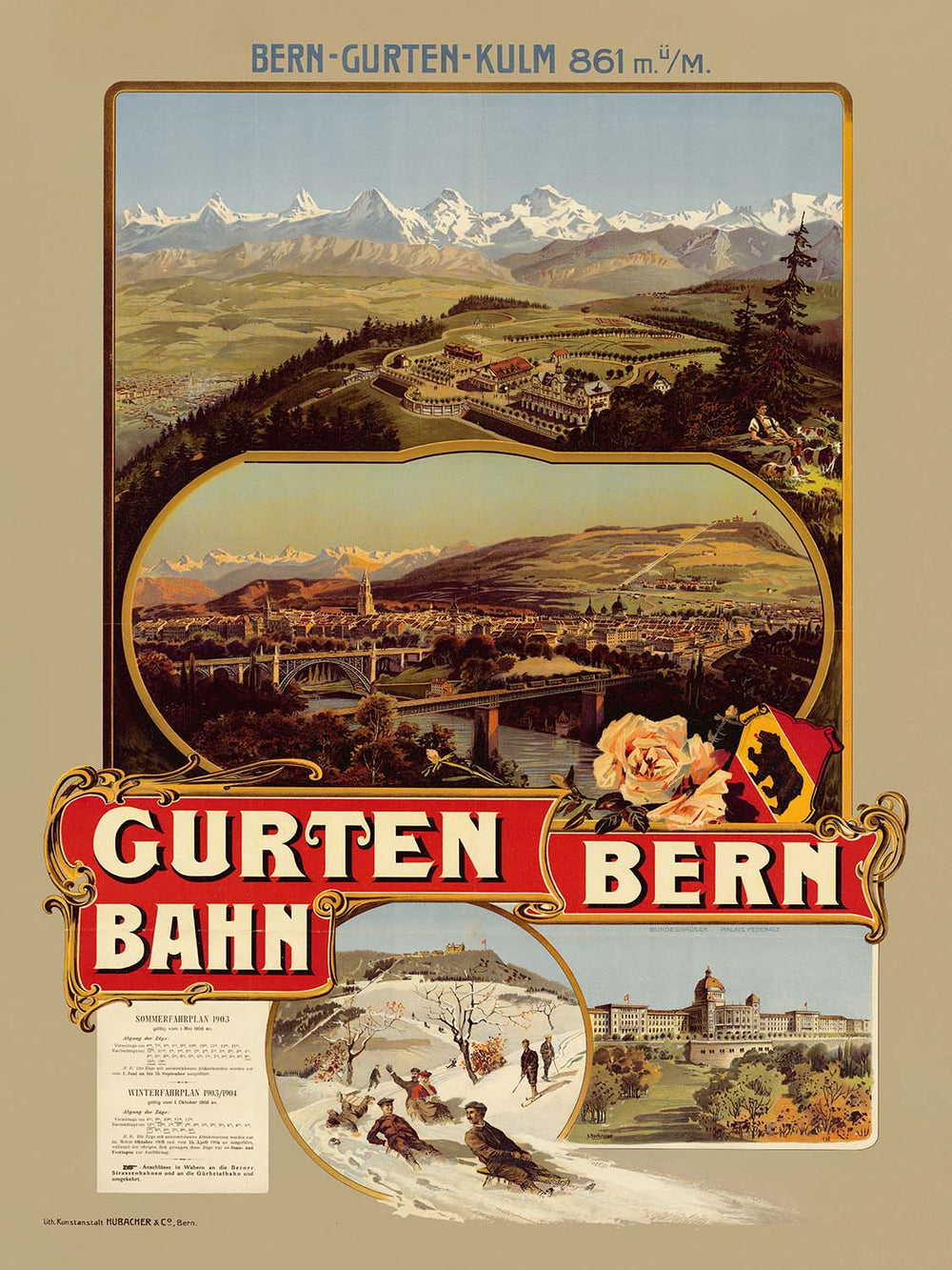 Bern Travel Poster: Gurten-Bahn by Anton Reckziegel, 1903