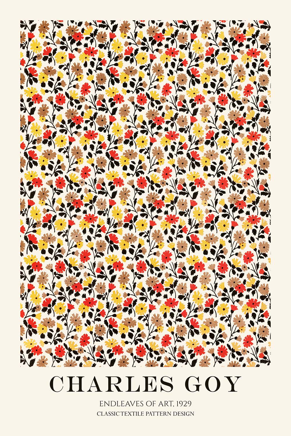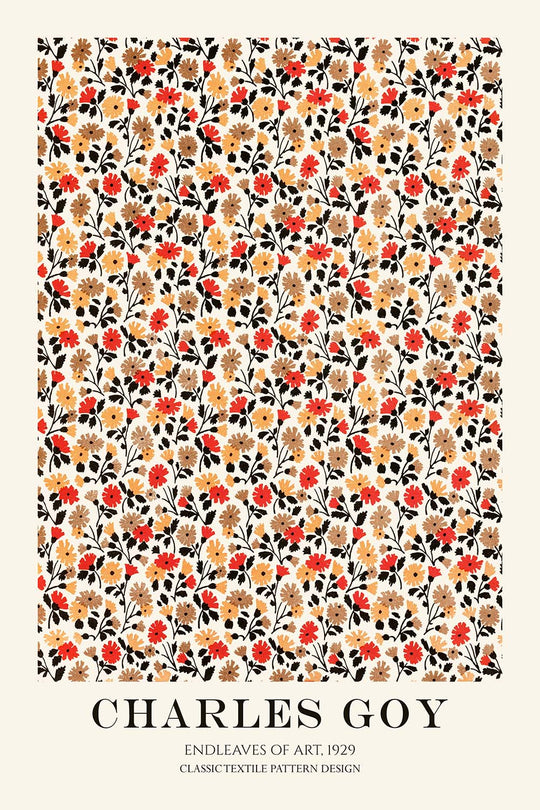 Endleaves of Art (1929) by Charles Goy is a lyrical floral pattern from the interwar era, conceived for the decorative realm of book arts and domestic interiors. This restored, high‑quality print celebrates the tradition of patterned endleaves—those beautifully printed papers that line the inside covers of fine books—while channeling the folk-art sensibility that prized natural motifs and rhythmic ornament. Goy’s design translates the poetry of the garden into a repeating tapestry of forms, offering a timeless bridge between artisanal craft and early modern design.