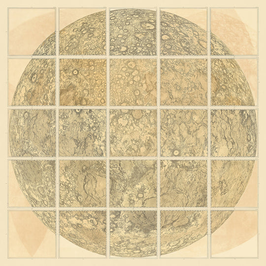 El diseño y el estilo del mapa de Schmidt son característicos de la precisión y el arte de la cartografía alemana del siglo XIX. Los elementos dibujados a mano, combinados con el gran formato del mapa, crean una pieza visualmente impactante e informativa. Compuesto por 25 hojas de mapas individuales, cada sección de la superficie lunar se presenta con una claridad y precisión excepcionales. Este mapa no sólo sirve como documento científico sino también como obra de arte, que muestra la habilidad y dedicación de su creador.