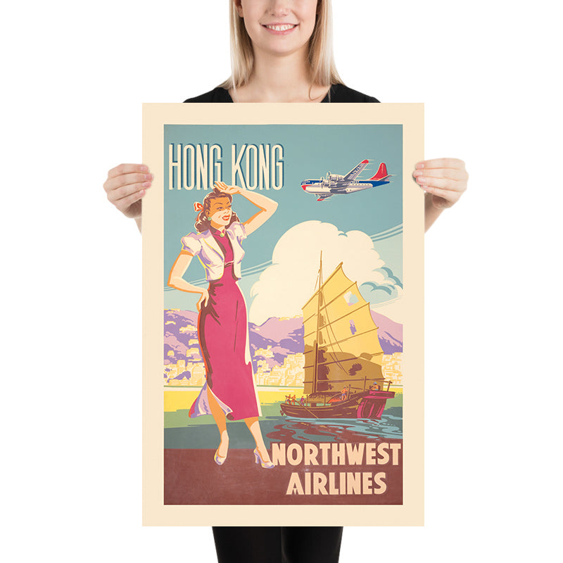 Hong Kong Travel Poster by Northwest Airlines, 1950