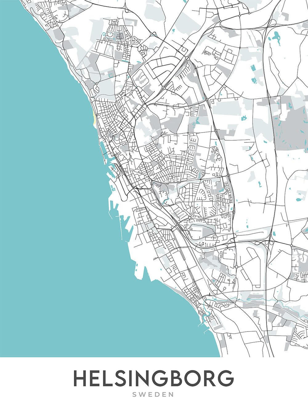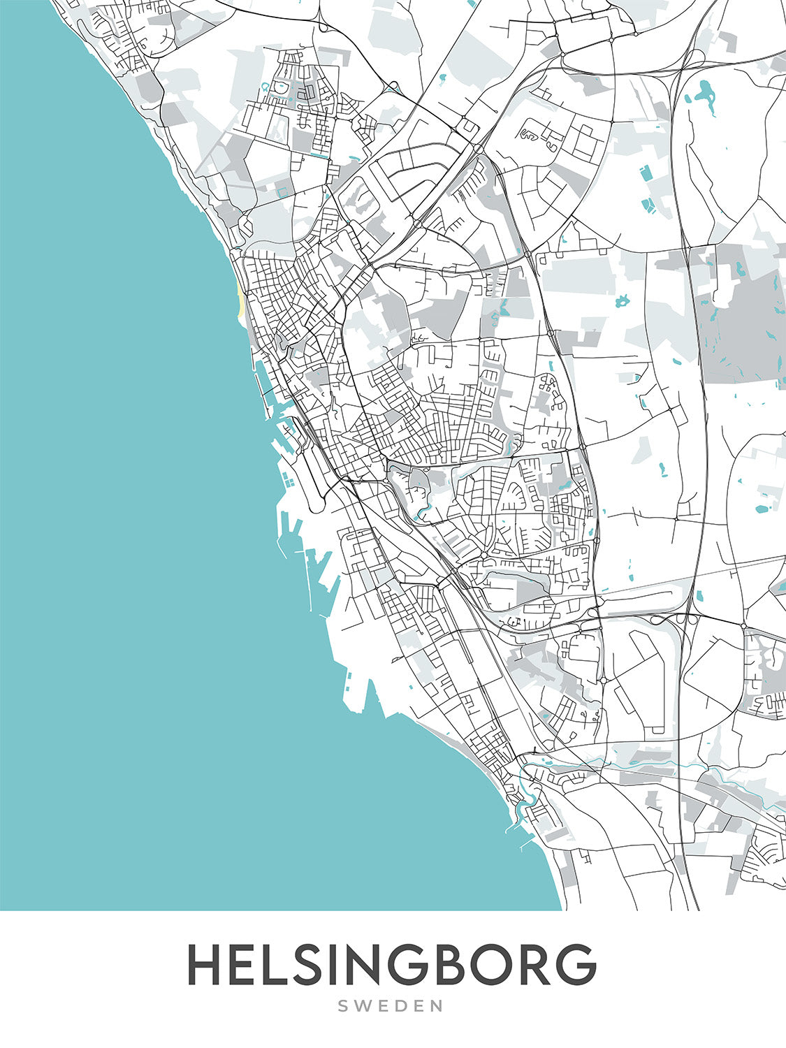 Este mapa de Helsingborg, Suecia, es una obra maestra moderna que captura la esencia del diseño escandinavo. El mapa se centra en los vibrantes barrios, las principales carreteras y los lugares emblemáticos de la ciudad, lo que lo convierte en una herramienta imprescindible para cualquier amante de la cartografía moderna.