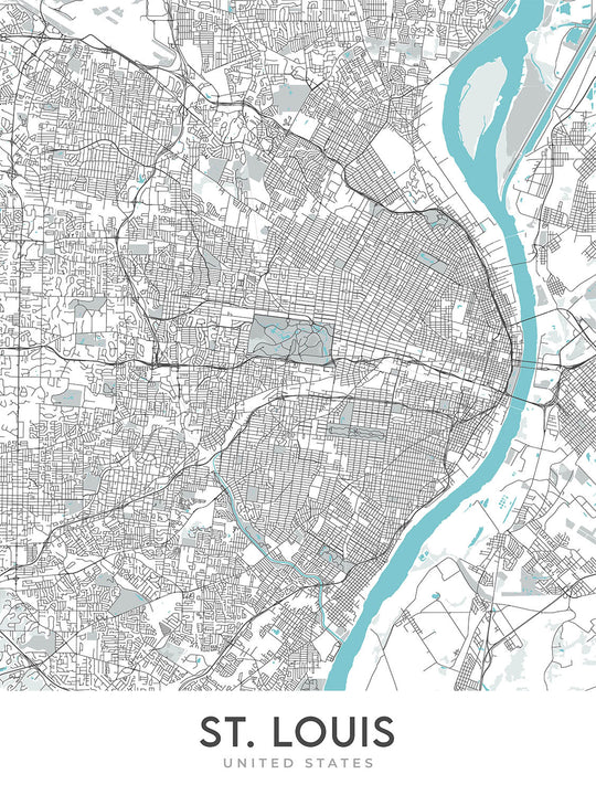 Este mapa de St. Louis, Missouri, es una obra de arte cartográfica moderna y detallada, que presenta un diseño único y contemporáneo. El mapa se centra en la ciudad de St. Louis y sus alrededores, proporcionando una representación precisa y visualmente agradable de la geografía de la ciudad. El mapa cubre una amplia gama de vecindarios, incluidos el centro, Soulard, Lafayette Square, Central West End, Tower Grove South, Shaw, Botanical Heights, Fox Park, Benton Park y The Hill. También incluye carreteras, rutas y autopistas principales, como la Interestatal 44, la Interestatal 55, la Interestatal 64, la Interestatal 70, la Interestatal 270, la Ruta 40 de los EE. UU., la Ruta 61 de los EE. UU., la Ruta 67 de los EE. UU., la Ruta 141 de Missouri y la Ruta 180 de Missouri.