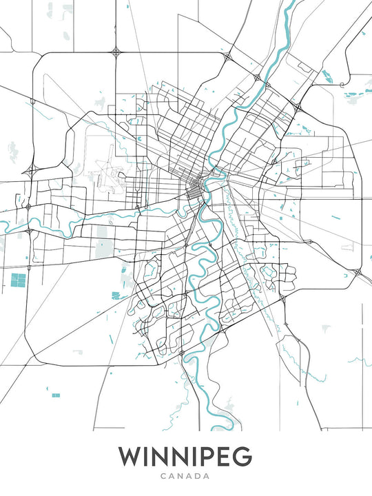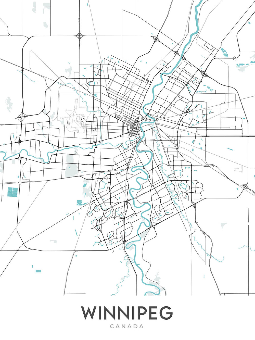 Este mapa de Winnipeg es un callejero moderno y detallado sin etiquetas, que se centra en la ciudad y sus alrededores dentro de la región más grande de Canadá. Es una hermosa obra de arte que agregará un toque de sofisticación a cualquier hogar u oficina. El mapa cubre una amplia gama de vecindarios, incluidos el centro, St. Boniface, Transcona, Charleswood, Tuxedo, River Heights, Fort Garry, Southdale, Whyte Ridge y Waverley West.
