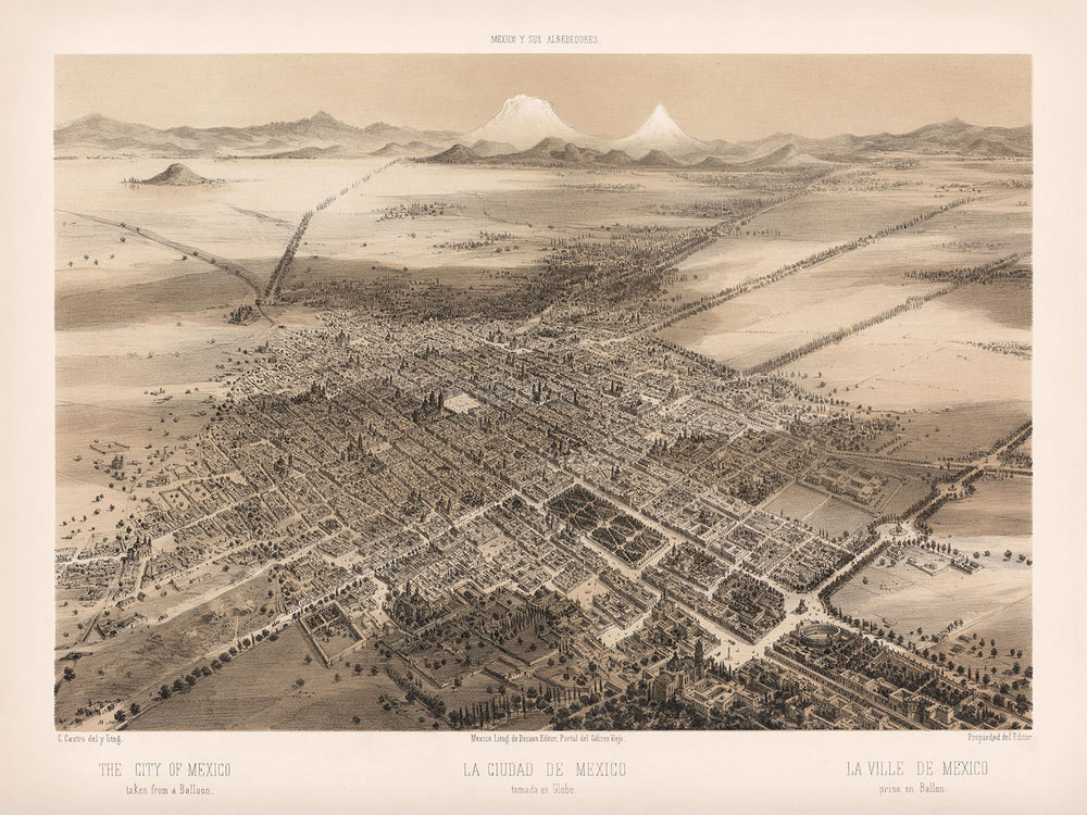 - Vista aérea: El mapa proporciona una perspectiva aérea de la Ciudad de México, tomada desde un globo aerostático.