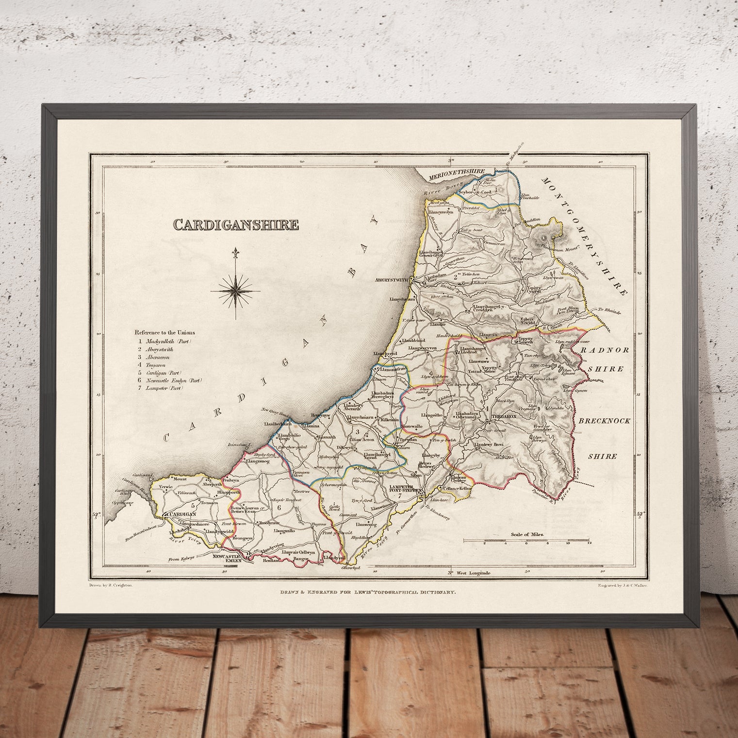 Old Map of Ceredigion, Wales by Lewis, 1844: Cardigan Bay, Aberystwyth, Cardigan, Lampeter