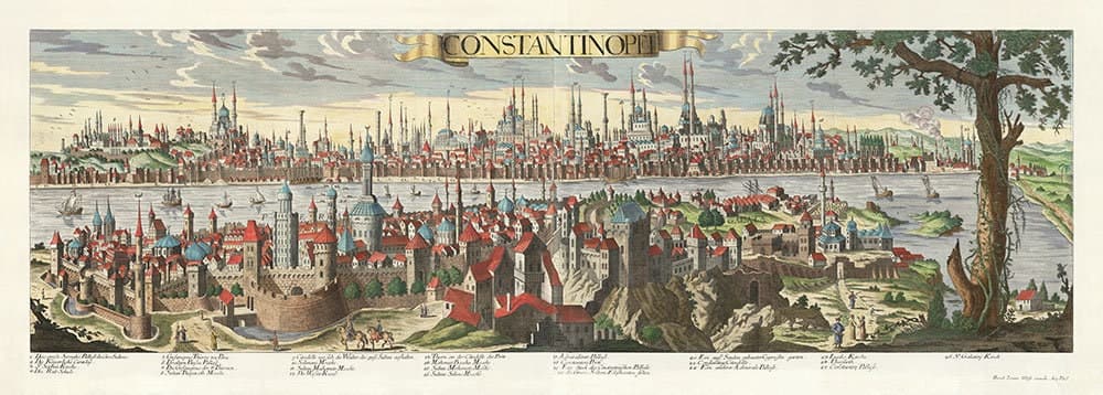 Una hermosa y excepcionalmente rara antigua mapa de Constantinopla (Estambul), publicada originalmente en 1720 por Jeremias Wolff.
