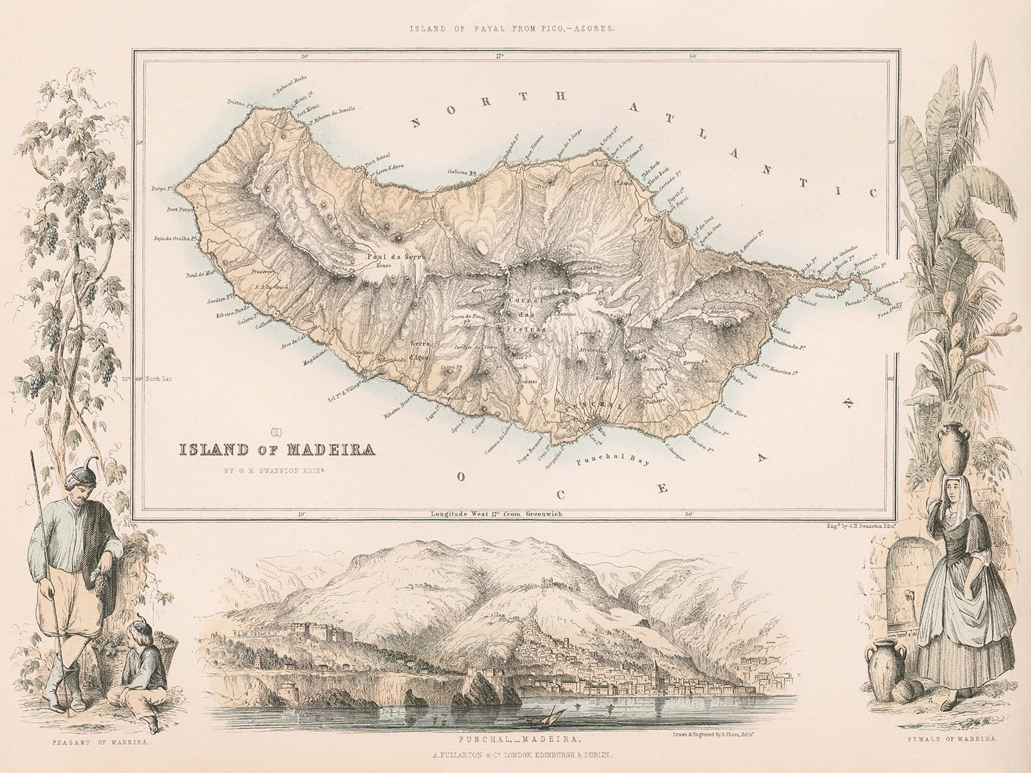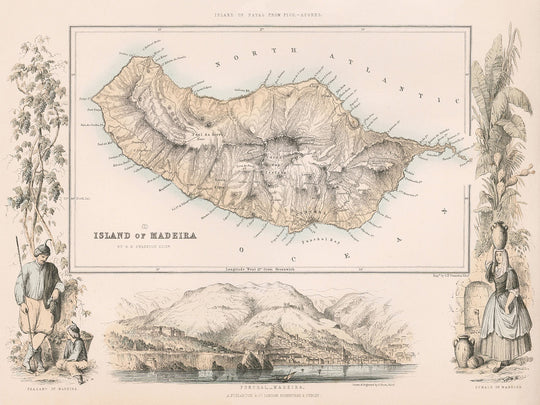 Archibald Fullarton & Co. eran conocidos por su capacidad para combinar la belleza artística con la precisión científica, y este mapa es un testimonio de su experiencia. La inclusión de características topográficas detalladas, junto con viñetas artísticas, refleja la fascinación europea por la exploración y documentación de tierras lejanas durante este período. Este mapa no sólo sirve como guía geográfica sino también como artefacto cultural, que captura la esencia de Madeira a mediados del siglo XIX.