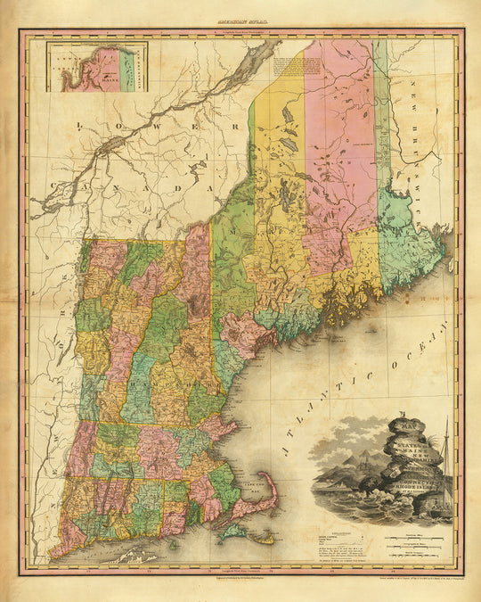 Sumérjase en el tapiz histórico de Nueva Inglaterra con esta exquisita reproducción del "Mapa antiguo de Nueva Inglaterra" de H. S. Tanner. Explore en detalle los asentamientos, condados, lugares emblemáticos y maravillas naturales que daban forma a la región en 1820. Este mapa es a la vez una cautivadora pieza histórica y una impresionante muestra de arte cartográfico, lo que lo convierte en una valiosa adición a cualquier colección o en un regalo bien pensado para los entusiastas de la historia, los amantes de los mapas y cualquier persona fascinada por el rico patrimonio de Nueva Inglaterra.