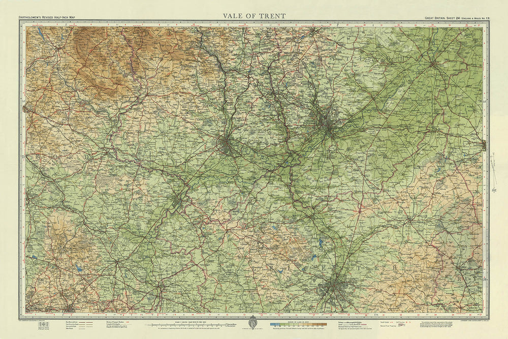 - Nombre: Mapa Revisado de Media Pulgada de Gran Bretaña de Bartholomew: Hoja 24 - Vale de Trent
