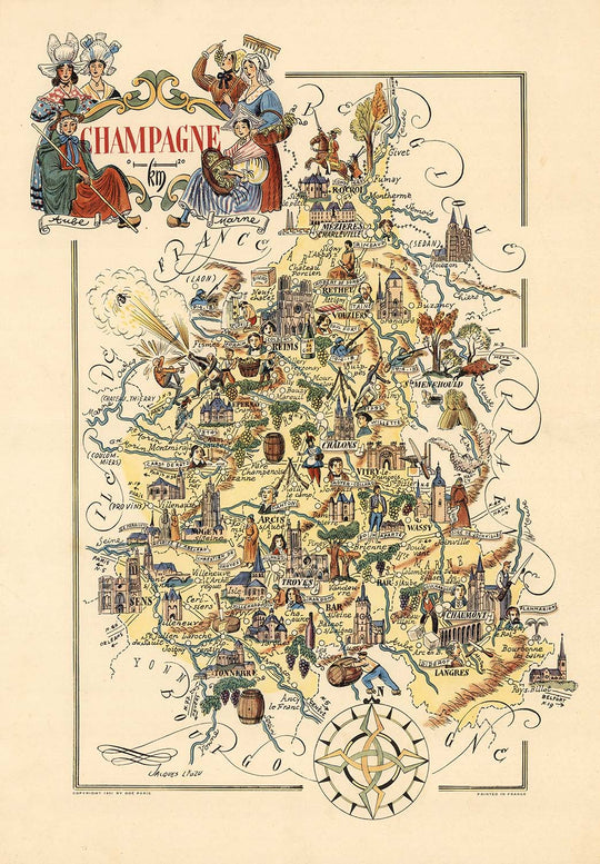 Ya seas un amante de la historia, un conocedor del arte, o alguien que aprecia los intrincados detalles de la cartografía, este mapa es un tesoro. Sirve como una invitación a explorar el rico tapiz de Champagne, ofreciendo perspectivas no solo sobre su geografía, sino también sobre el corazón y el alma de su gente.