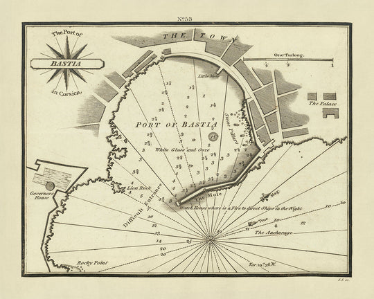 Este gráfico de "El puerto de Bastia en Córcega" de William Heather es más que un simple mapa; es un artefacto histórico que continúa inspirando y educando, uniendo el pasado con el presente en el rico tapiz de la historia marítima.