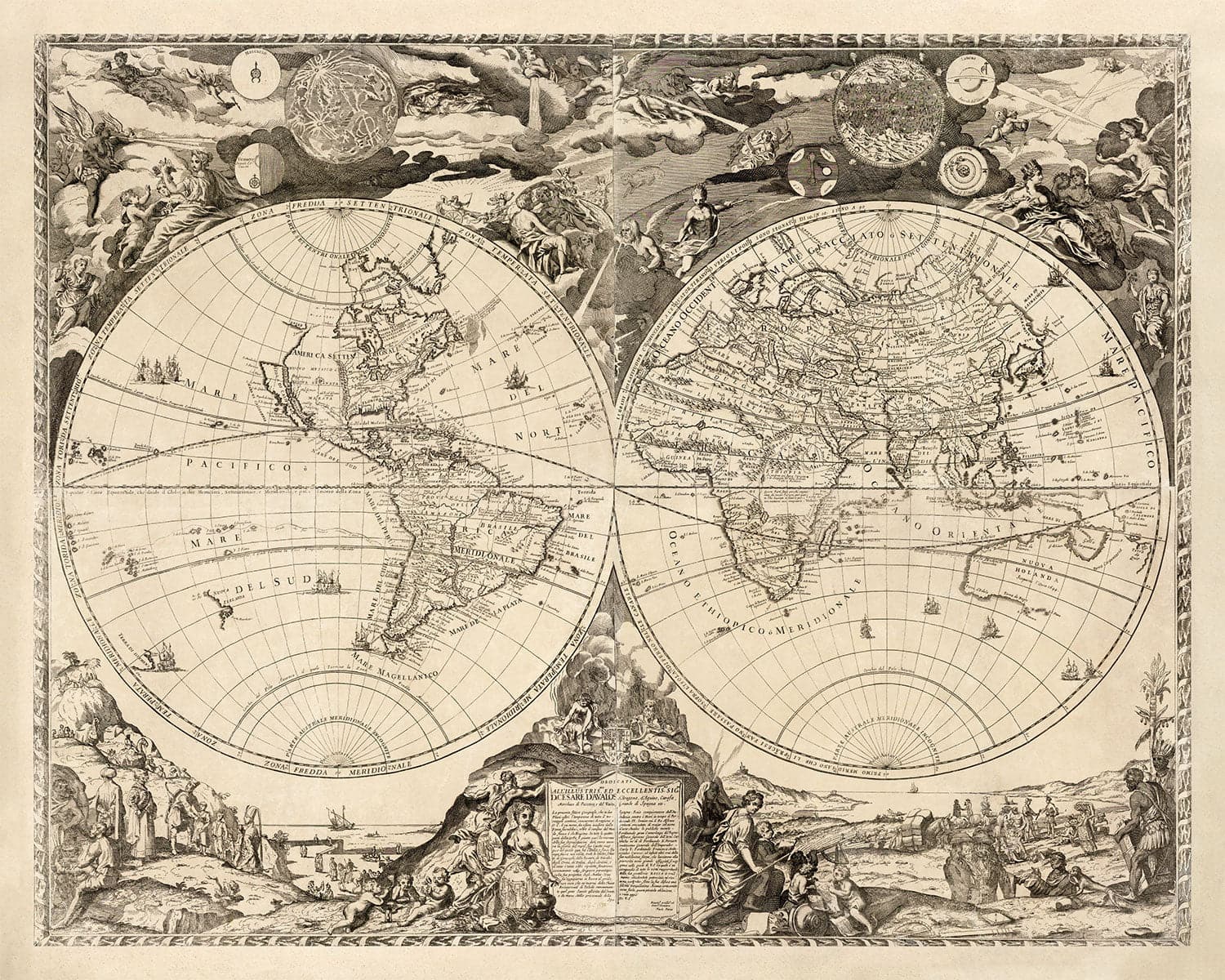 Mapa del Viejo Mundo, 1700: Mapa del Atlas Antiguo Monocromo raro, Arte de la Pared Vintage por Paolo Petrini