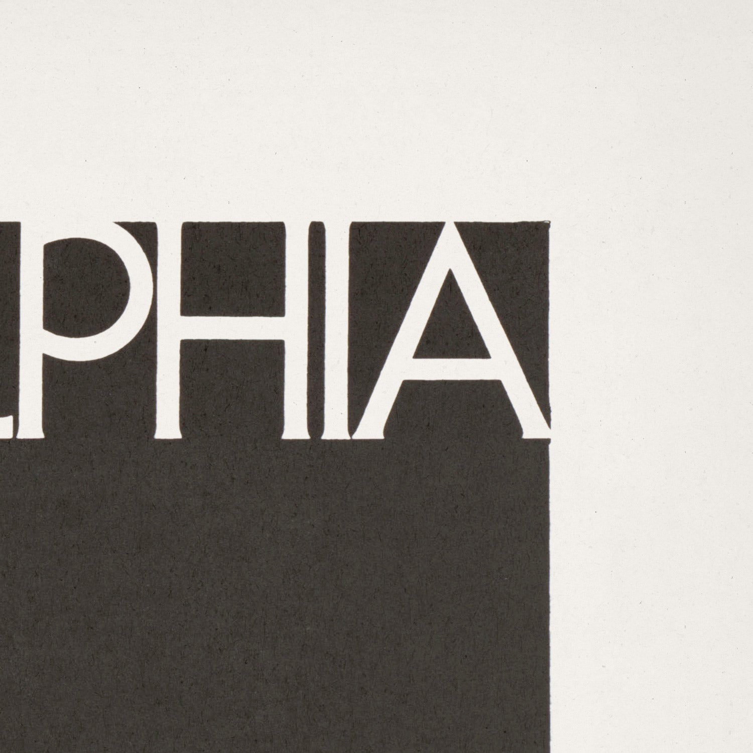 The typography is bold and impeccably legible, echoing international mid‑century poster traditions. Its scale and placement anchor the image, guiding the viewer from the contemporary lettering to the historic architecture—an elegant visual metaphor for the dialogue between past and present that defines Philadelphia itself.